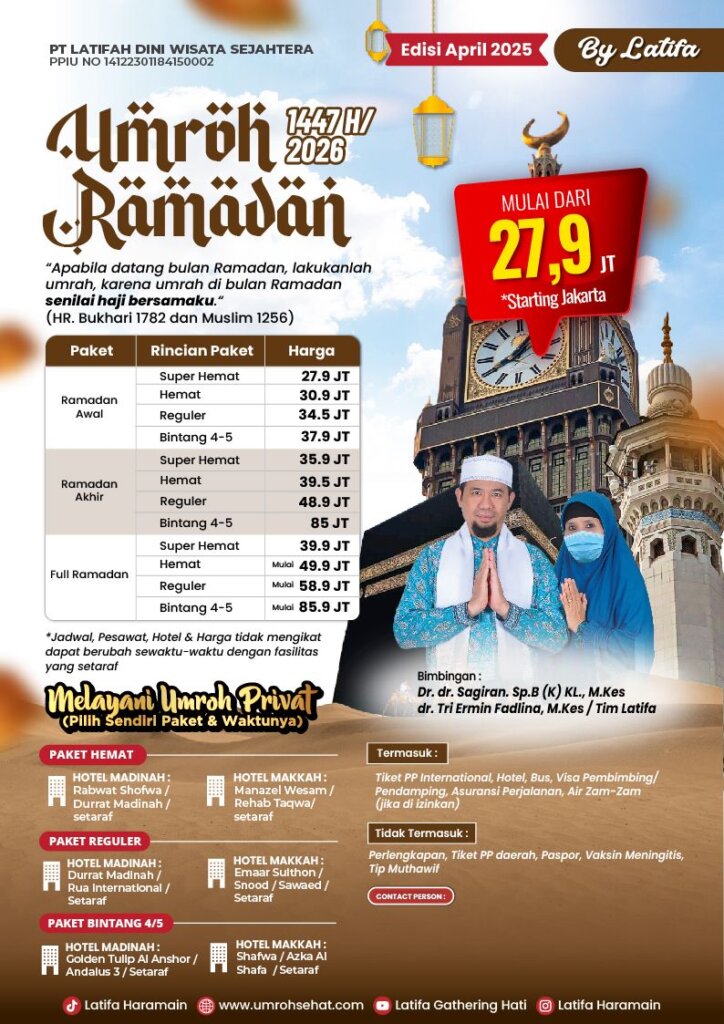 “Alhamdulillah selama proses pendaftaran hingga keberangkatan diservice dengan baik, dan istri saya sedang mengandung bisa dibackup dengan baik oleh Latifa.. Luar biasa dalam exstra menservice jamaahnya”