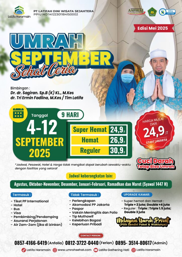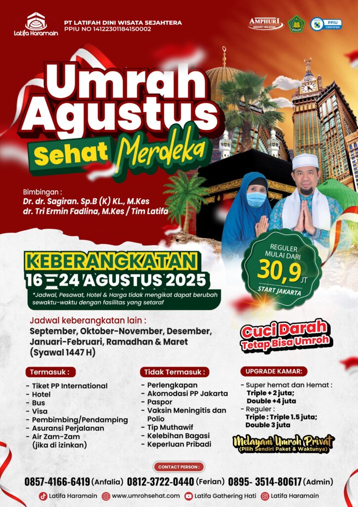 “Pelaksanaan umrah didampingi oleh dokter semua, jadi jika terjadi keluhan bisa langsung dicek. Cek laboratorium dan proses cuci darah sudah diuruskan tidak perlu memikirkan prosedur dll tinggal cuci darah saja”